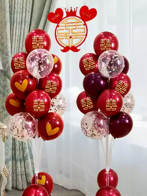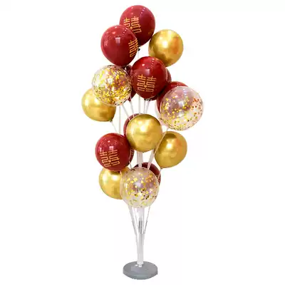 Channai red crystal set red wave ball 13 head floating balloon column (01 model) 13 head ground floating balloon column (02 model) Channai red metal gold gold wedding ground floating three layers