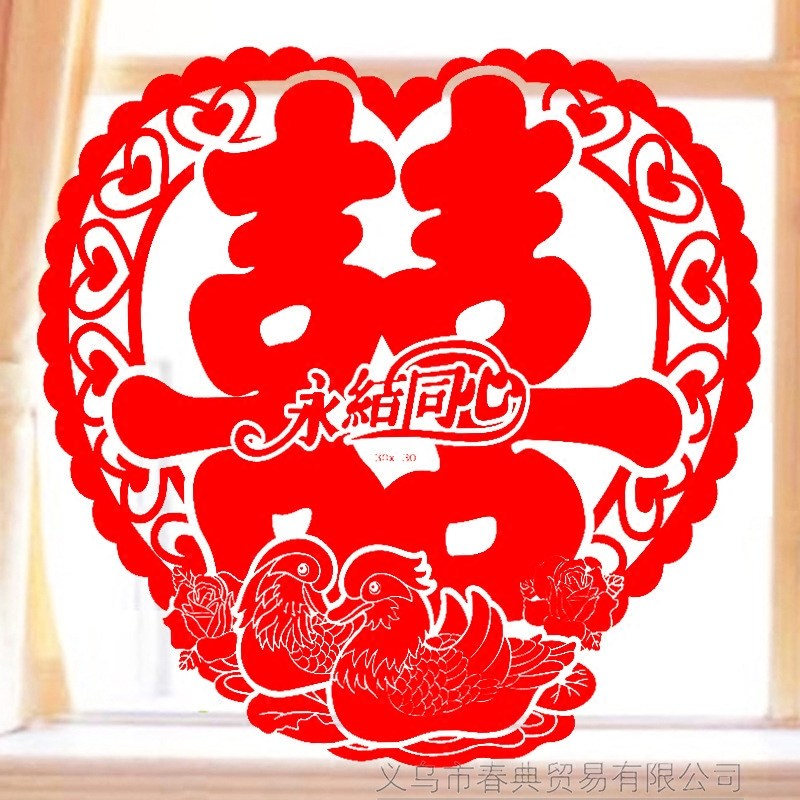 Heart edge Mandarin duck hundred years of friendship electrostatic sticker 28cm 28cm electrostatic sticker Happy word 28cm concentric circle happy electrostatic sticker 28cm Magpie happy electrostatic sticker 28cm 28