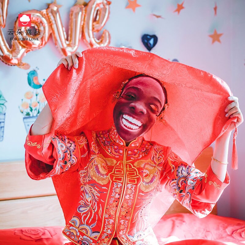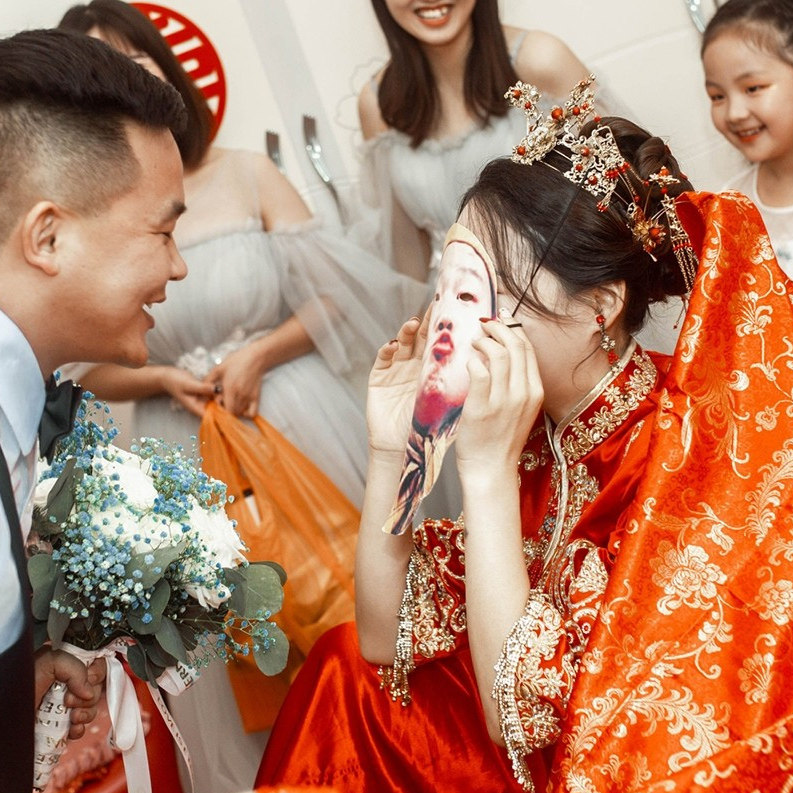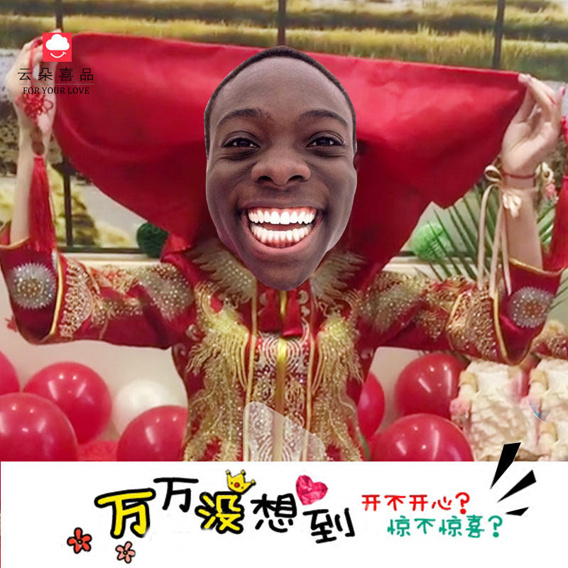 Shake the same style to pick up the mask The whole groom to pick up the game prop mask to get married the whole person red hijab