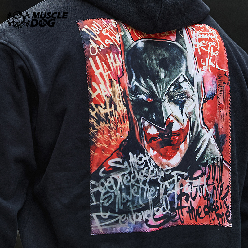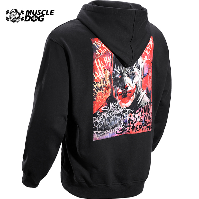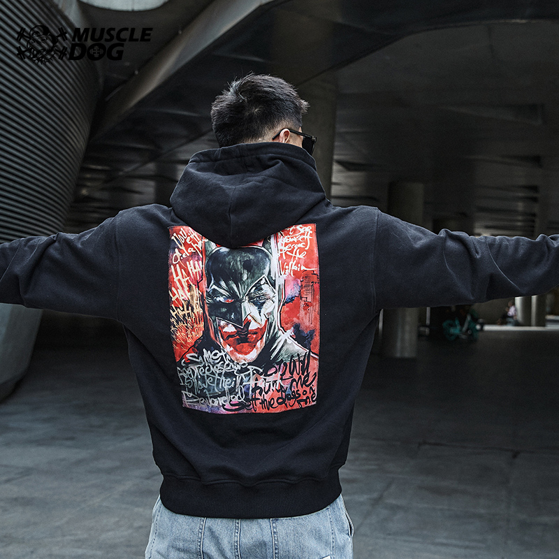 Muscle dog clown bat tide brand printing loose sports and leisure fitness training suit hooded pullover casual top men