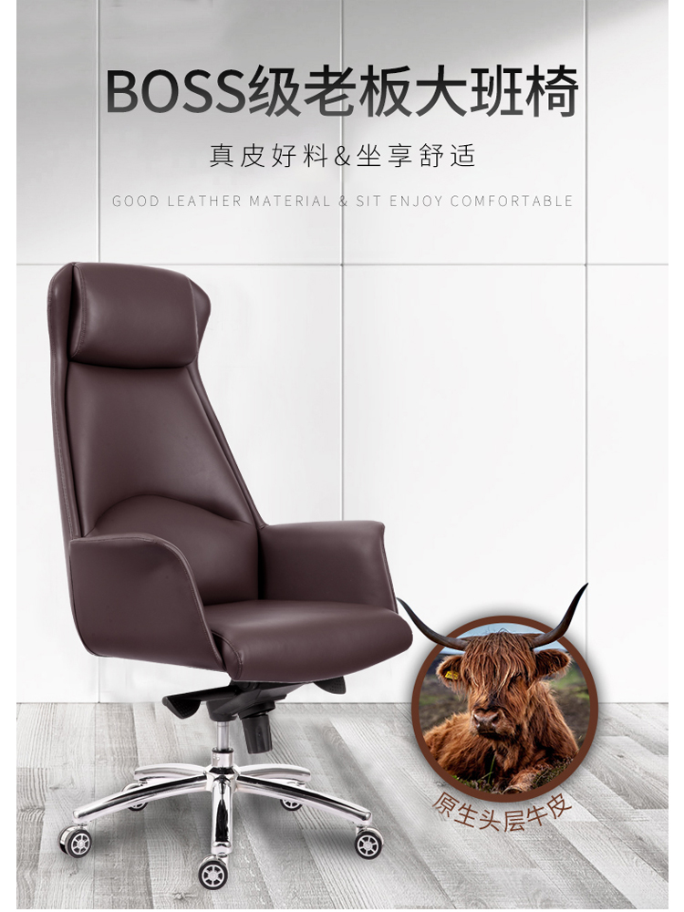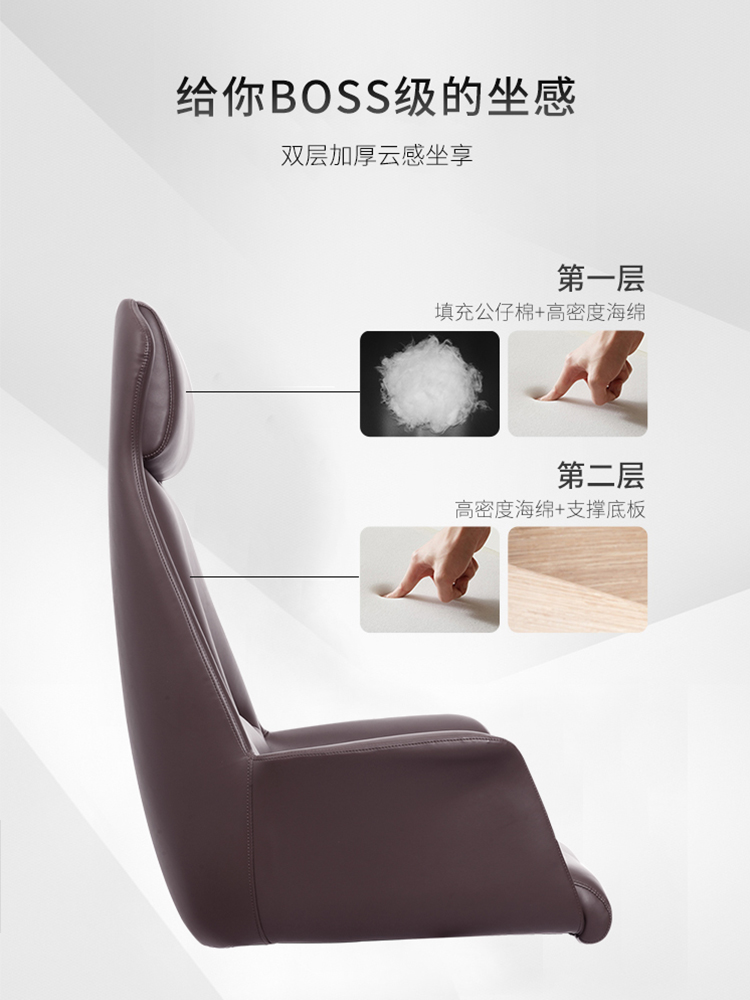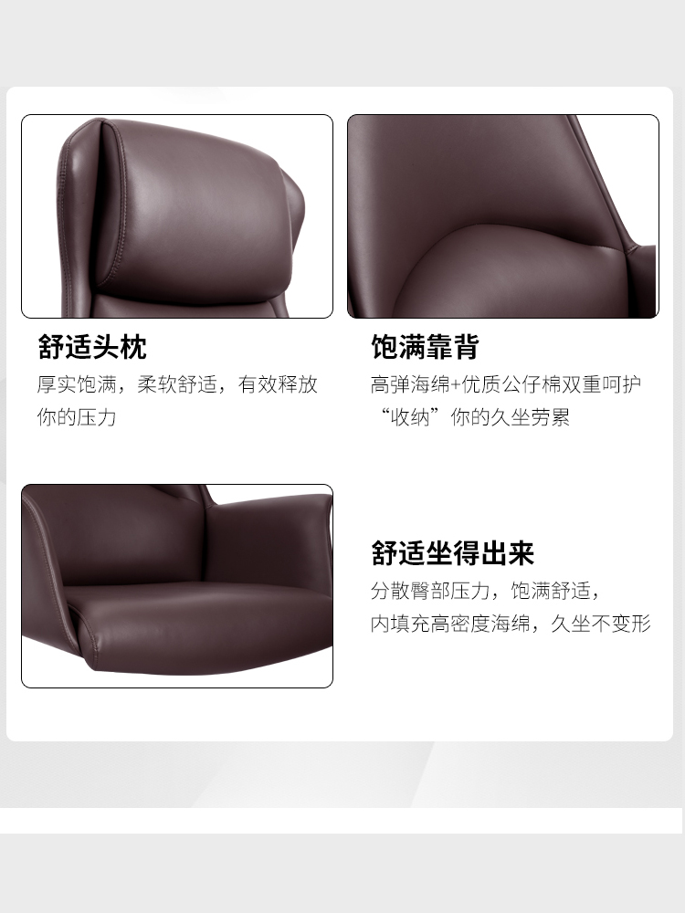 Leather office chair back comfortable sedentary boss chair executive chair simple computer chair home reclining study swivel chair