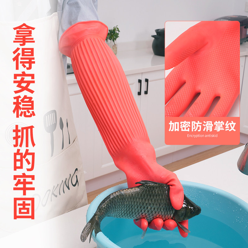 Extended washing dishes gloves washing clothes leather thick work wear-resistant kitchen household waterproof and oil-proof latex rubber