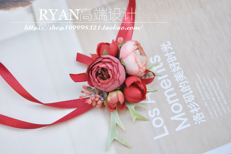 RYAN Original Red Wrist Flower Chinese Wedding Xiuhe Celebration Simulation Flower Wedding Celebration Business Annual Meeting