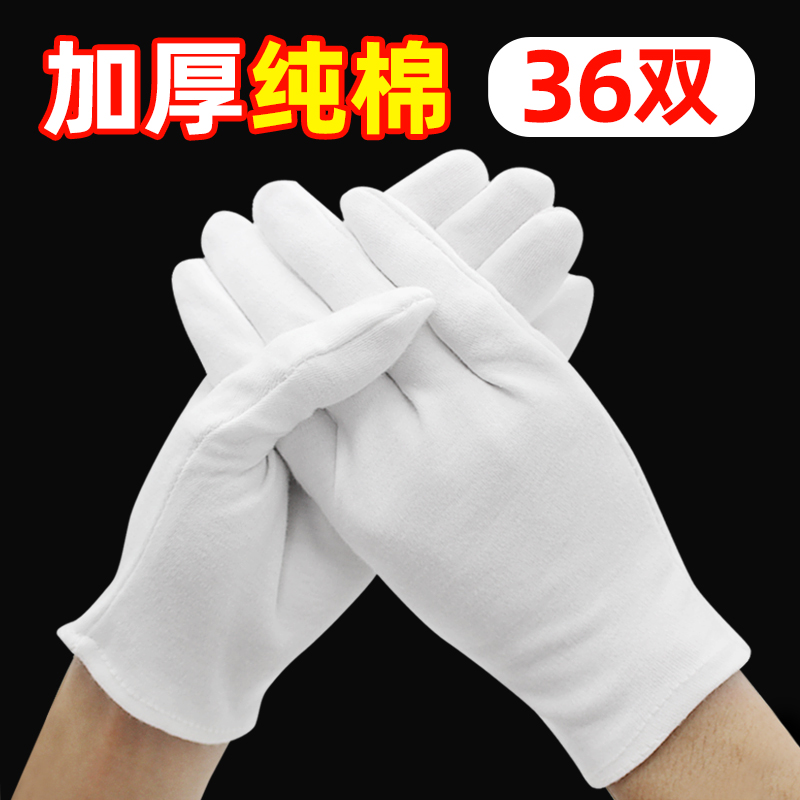 36 Double Loaded White Gloves Gift Instrument Pure Cotton play disc Pearl Job Raubao Driving thin Sweat Cloth Thickened abrasion resistant work