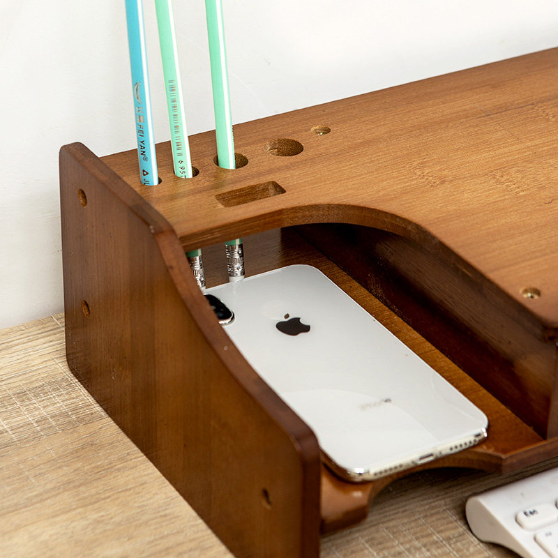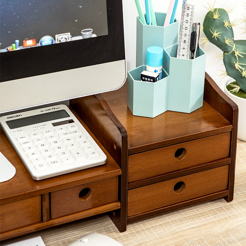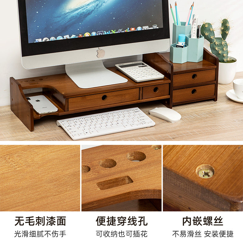 Creative display screen elevated desktop desktop to include base rack drawer shelves