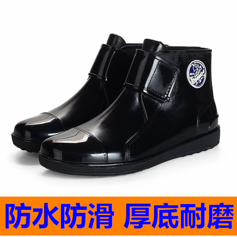 Four Seasons Short Barrel Rain Shoes Men Fashion Back Force Rain Boots Low Helps Waterproof Shoes Non-slip Thick Bottom Working Set Shoes Glue Shoes