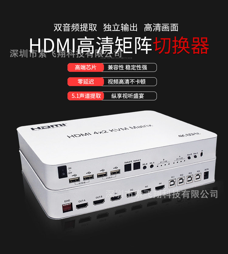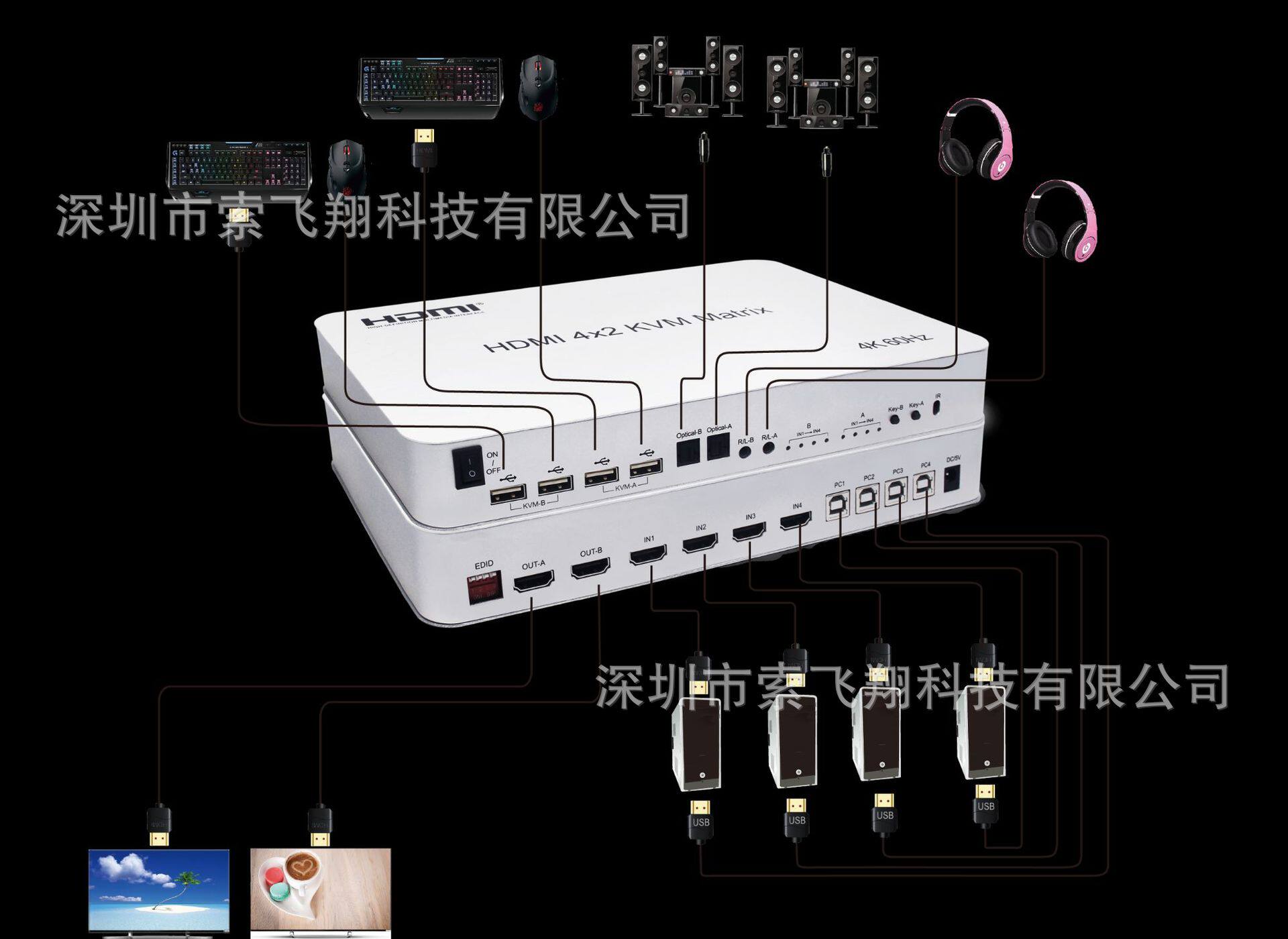 Sofei Xiang KVM4 * 2 matrix 4K60HZ2 0 version 4 in 2 out to support the sliding mouse keyboard audio-video separation