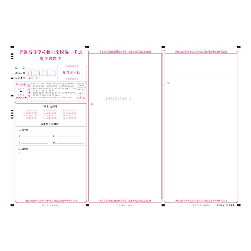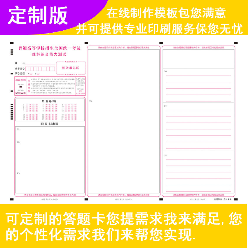 Exam paper paper paper paper paper system of answer paper answer card customized print A3A4 template net reading answer special