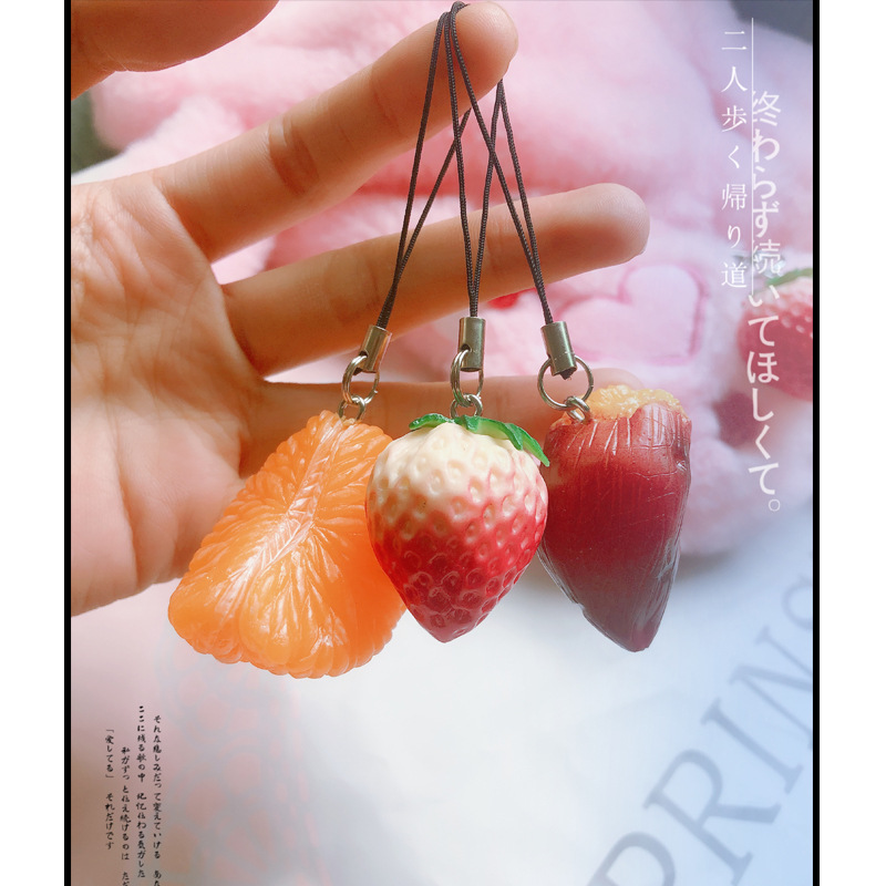 Creative Personality Emulation Baked Sweet Potato Key Button Pins Cute Strawberry Orange Buns Bag Pendant Ornament Bag Pendant