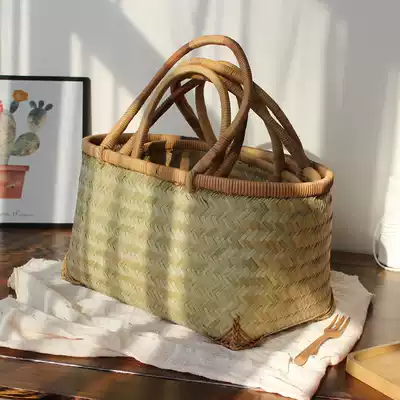 Bamboo basket Farmhouse Double Handle Basket Handle Bamboo Products Fruit Basket Weaving Basket Home
