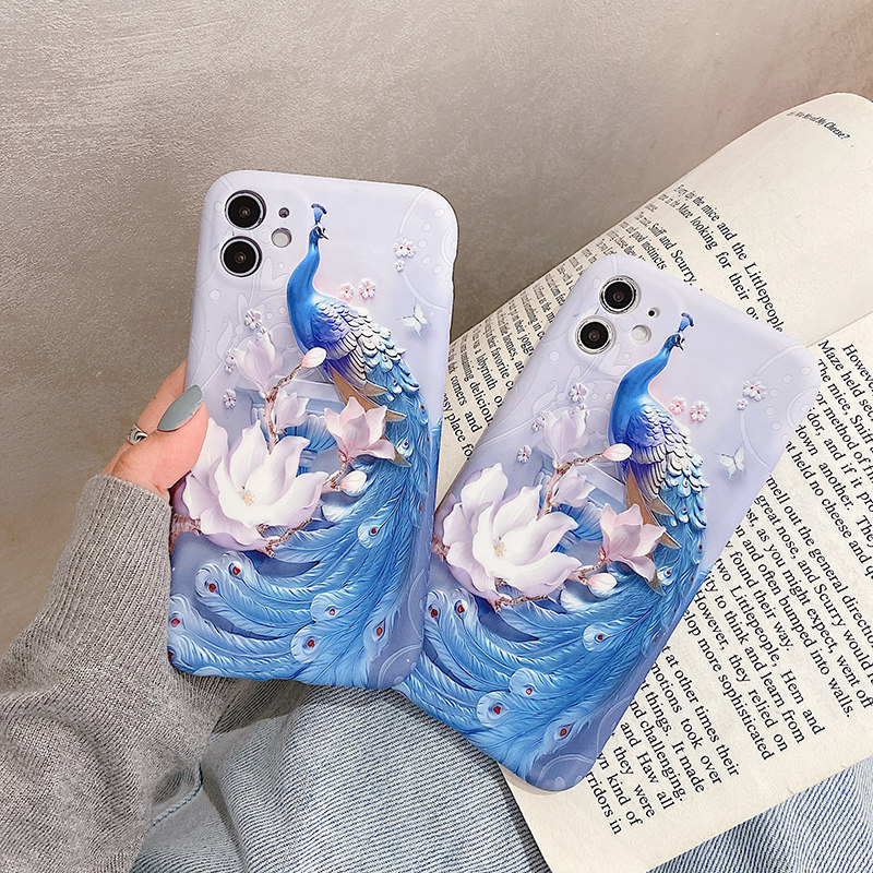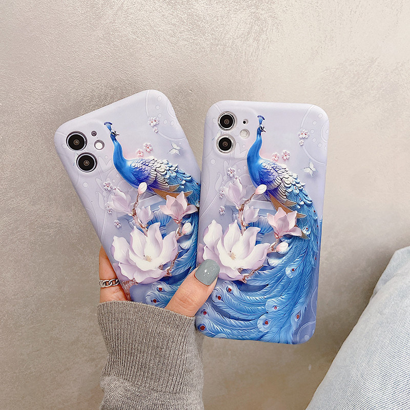 Fine peacock suitable for 12promax apple x mobile phone protection shell iPhone7p 8plus small crowdxs max xr se soft silicone 11pro