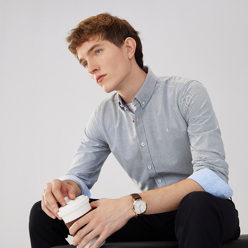 Navigare Italy small sailboat pure cotton long-sleeved shirt men's 2021 spring and autumn new solid color casual top