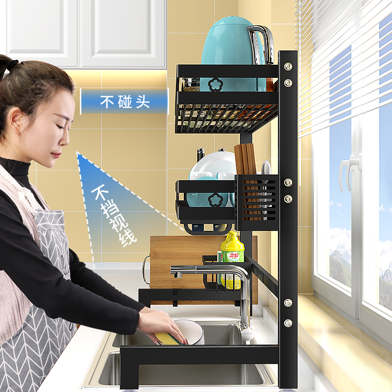 Kitchen sink shelf multifunctional countertop dishes bowl rack drain rack dishes storage shelf sink supplies