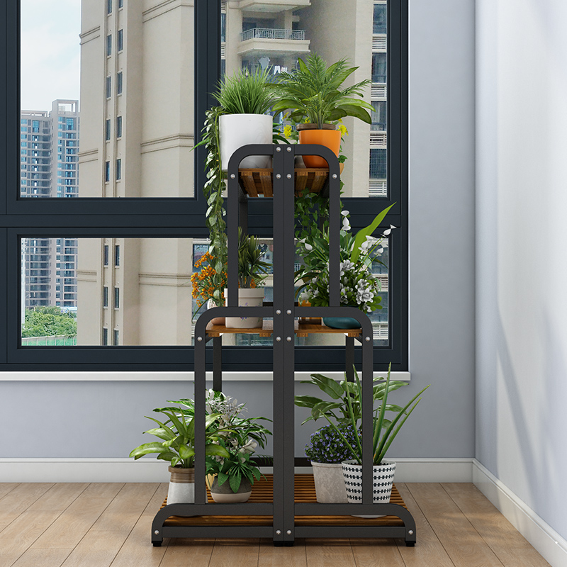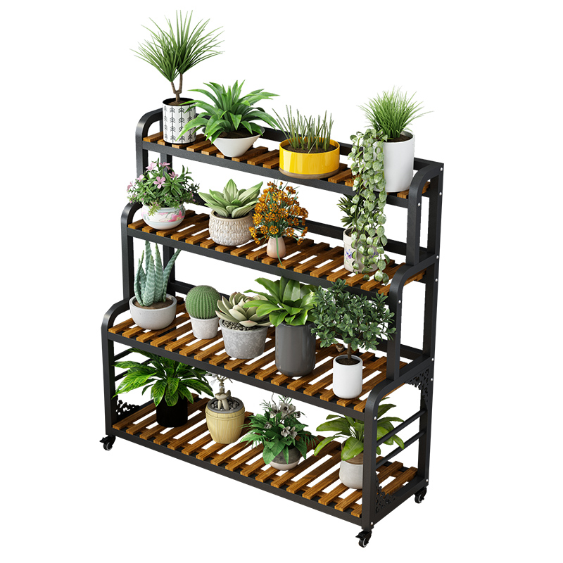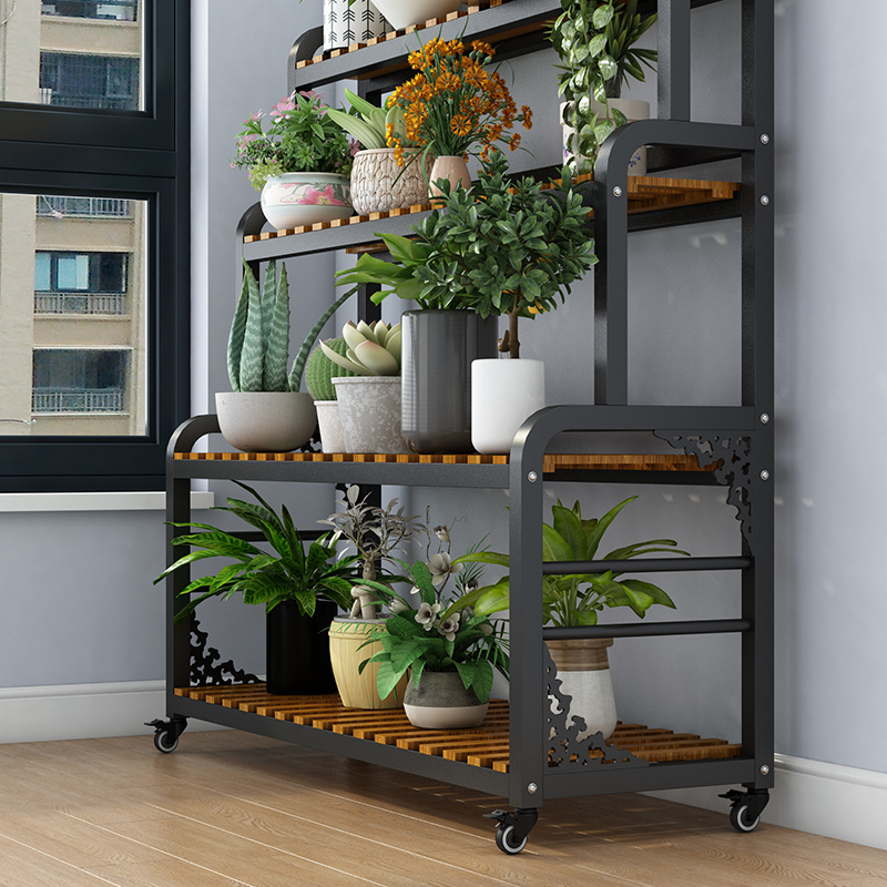 Solid wood flower frame floor floor-type multi-layer shelf outdoor balcony living room with meat iron carrot to move flower frame