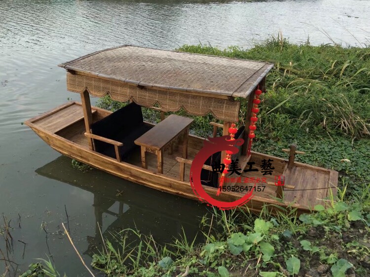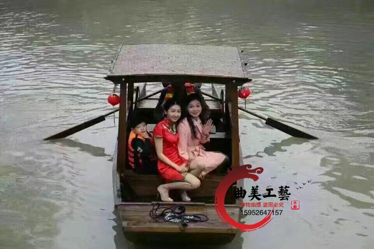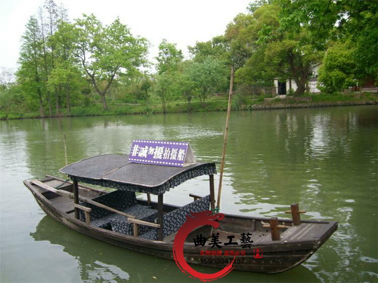 The new antique single canopy boat FIBERGLAS Tourist Boat Park hand rowing solid wood play boat canopy water shake