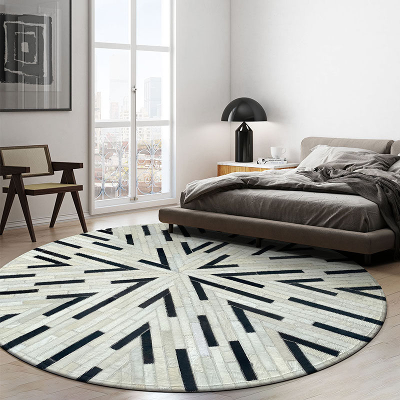 Leather stitching round rug light luxury living room Nordic style modern minimalist coffee table mat study bedroom bedside blanket