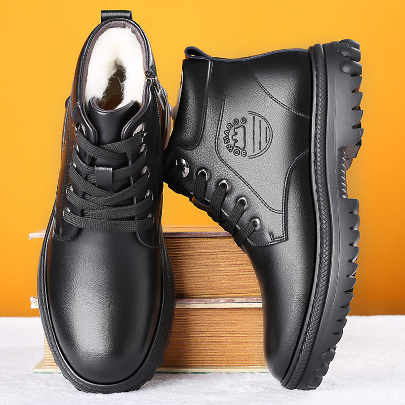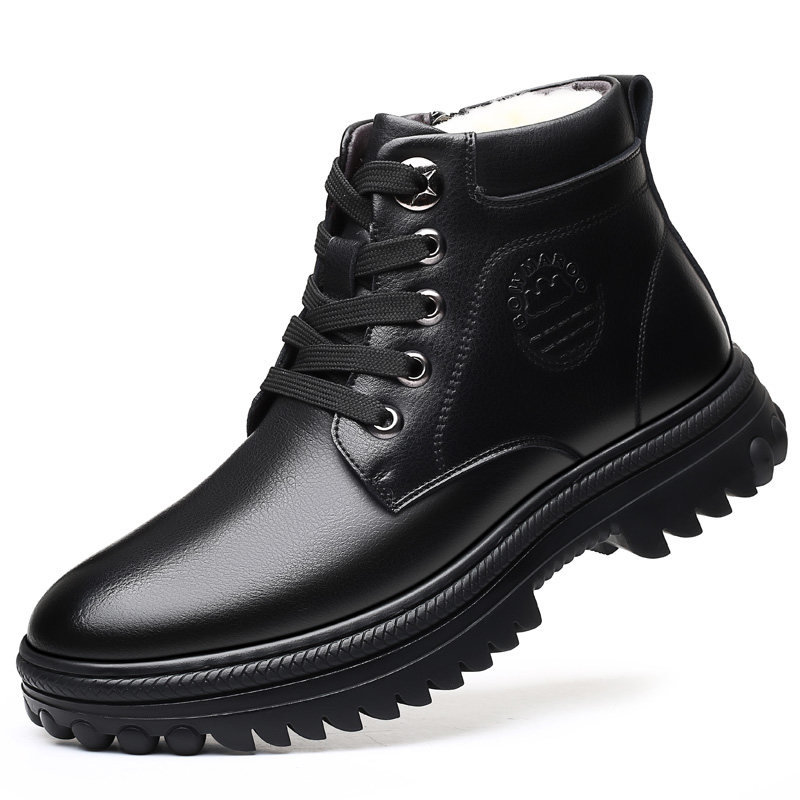 Winter men's cotton shoes plus thickening high-help shoes and wool old people in old leather shoes
