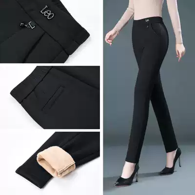 2020 autumn and winter New plus velvet thickened ladies outside wear pants mother high waist slim lamb cashmere pipe pants