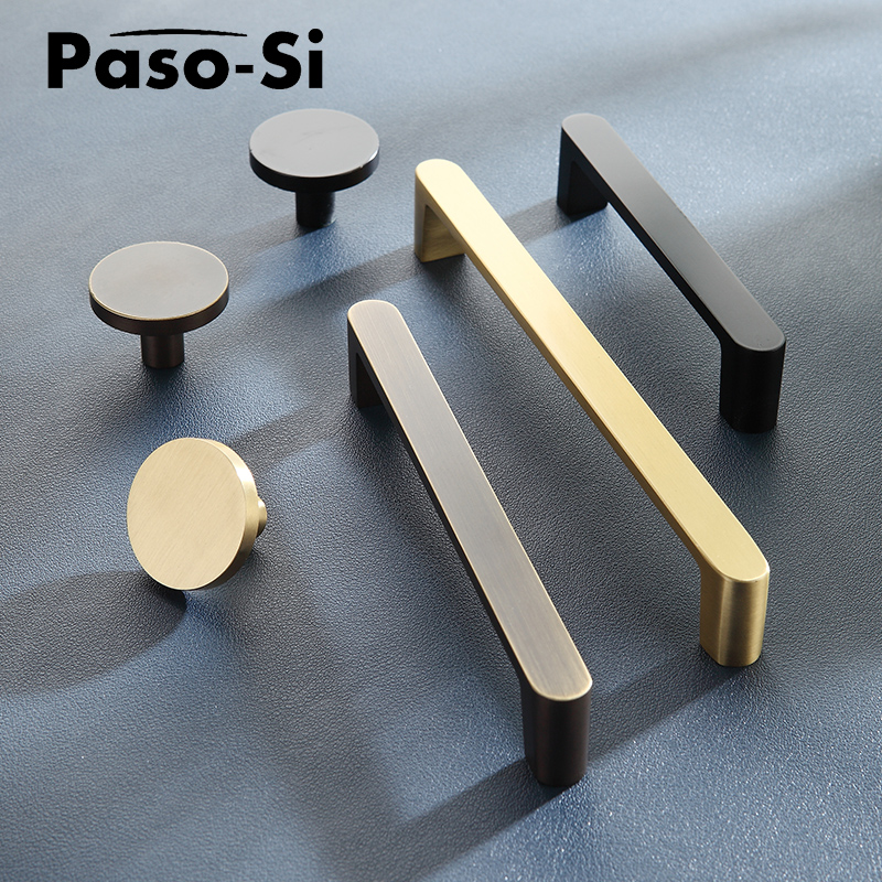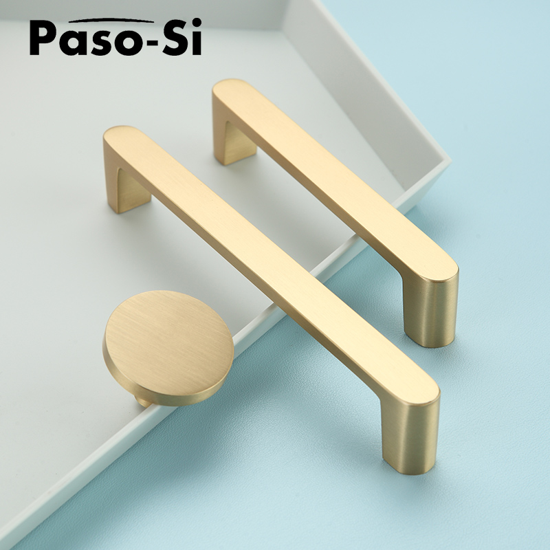 All copper cabinet door handle Golden modern simple brass light luxury wardrobe cabinet drawer pure copper single hole round handle
