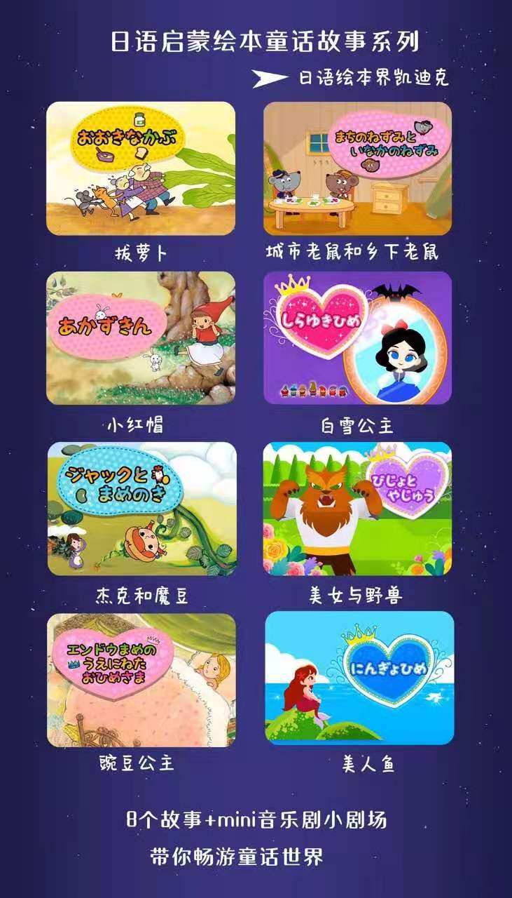 Easy to recognize 50 sound map Japanese classic fairy tale Japanese little sun non-point reading Hatsune Japanese word collection
