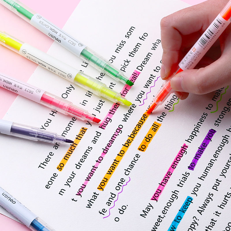 Able Double Head Fluorescent Pen Mark Pen 6 Color Student With Square Head Paddle Focus Colored Mark Round Head Mark Scribe