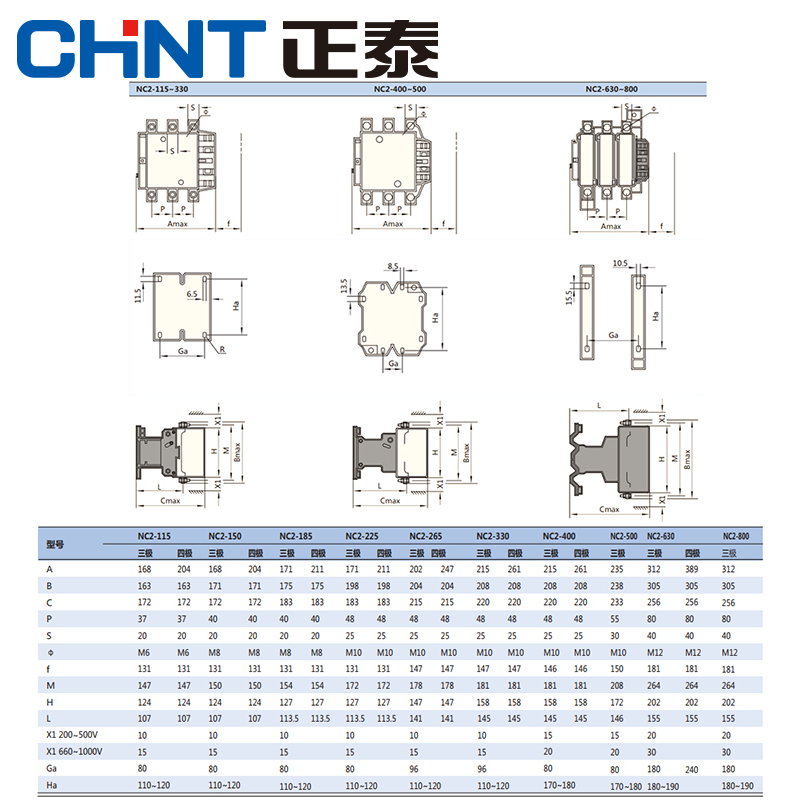 CHINT AC contactor NC2-115 150 185 225 260 330 400 630 220V 380V