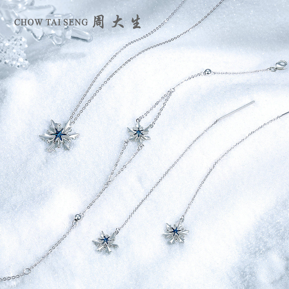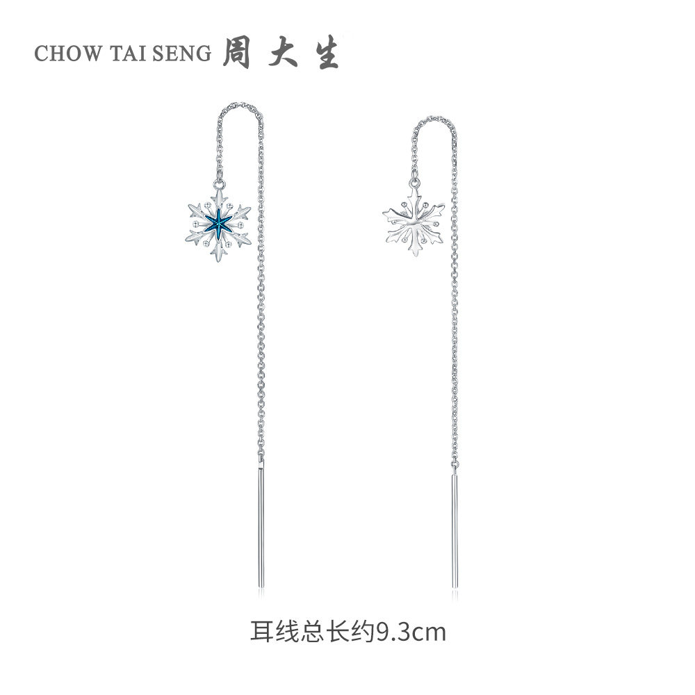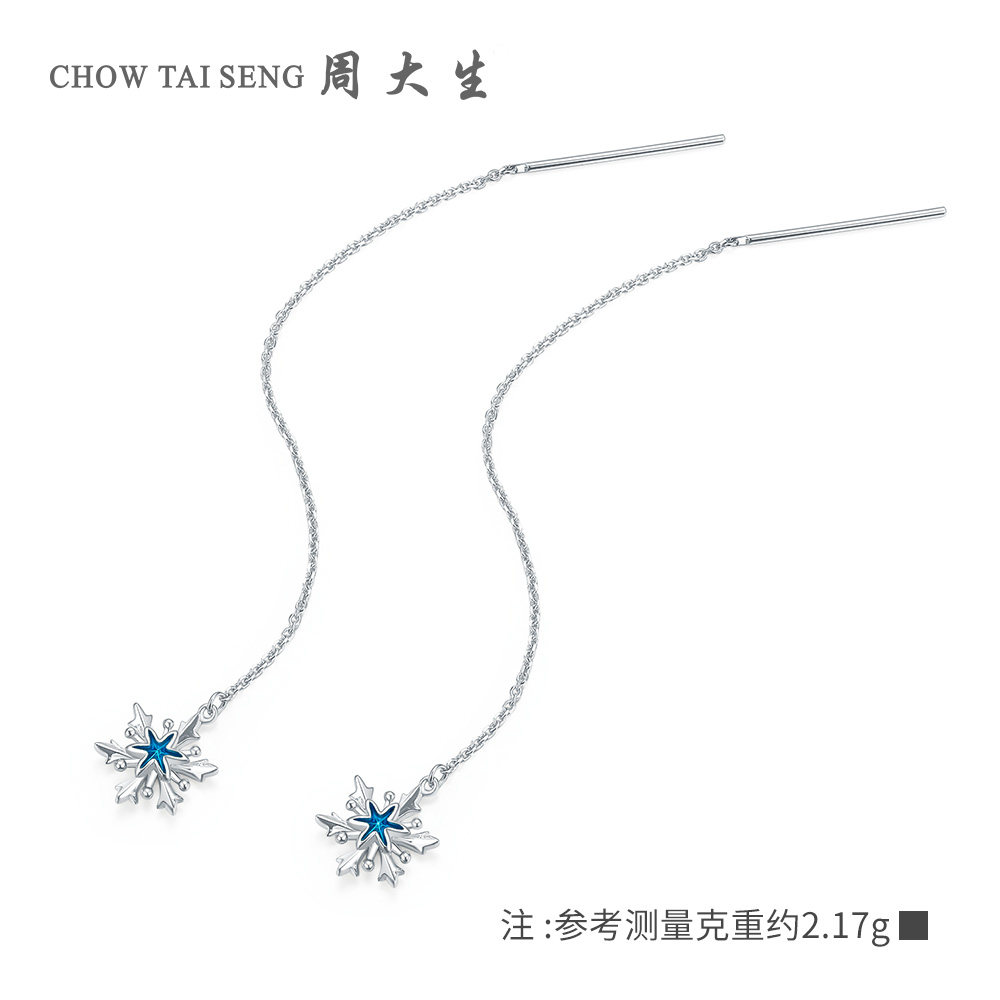 Zhou Dasheng platinum earrings pt950 enamel snowflake earrings tassel super fairy earrings first snow New Year gift