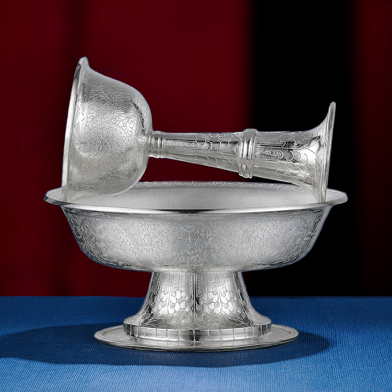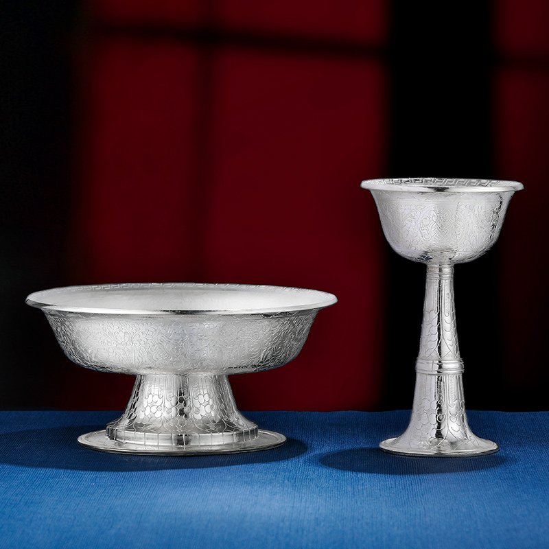 S990 pure silver hair care cup Nepal handmade eight auspicious for the Buddha's net silver water glass large 15 5cm swing piece fresh