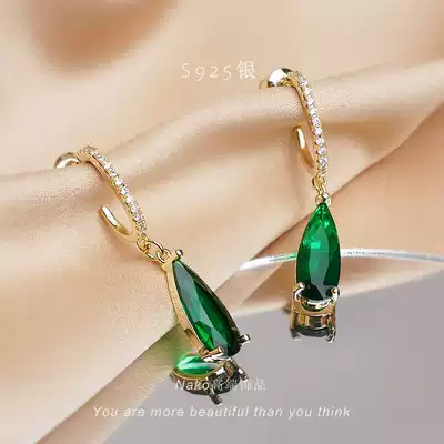 NAKO emerald earrings 2021 New Tide earrings round face thin ear needle temperament advanced atmosphere earrings