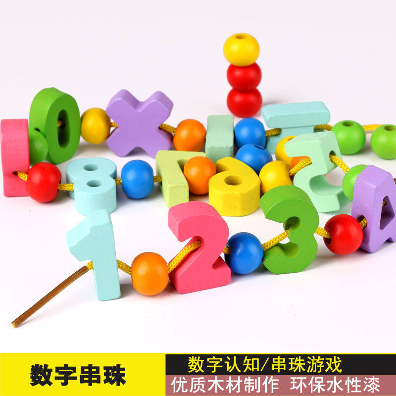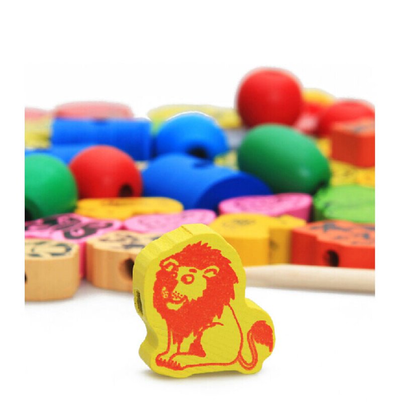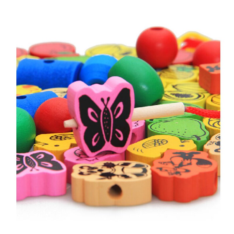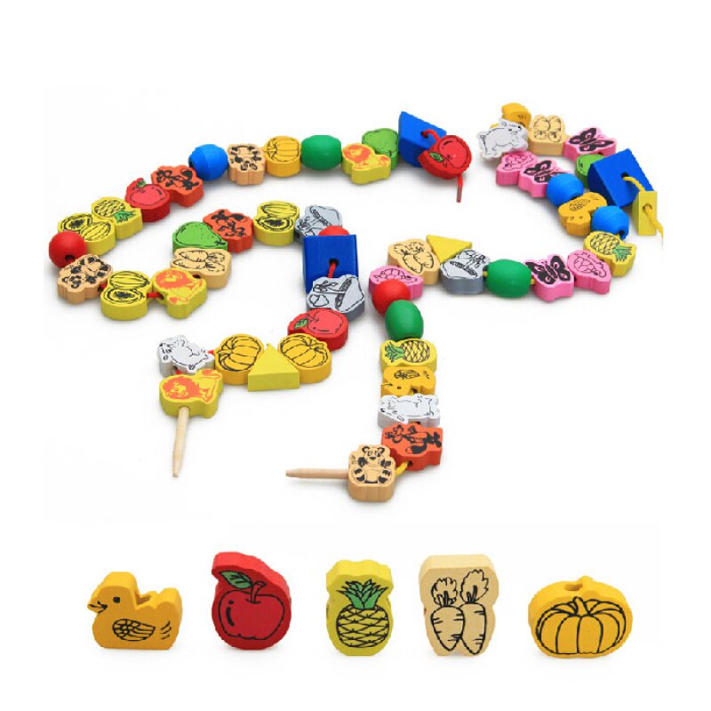 Sky Cat Shop Original Factory High Quality Children Building Blocks Puzzle String Pearl Toys Early Teach Baby To Wear Beads Threading Animal Fruit Wooden Strings Kindergarten