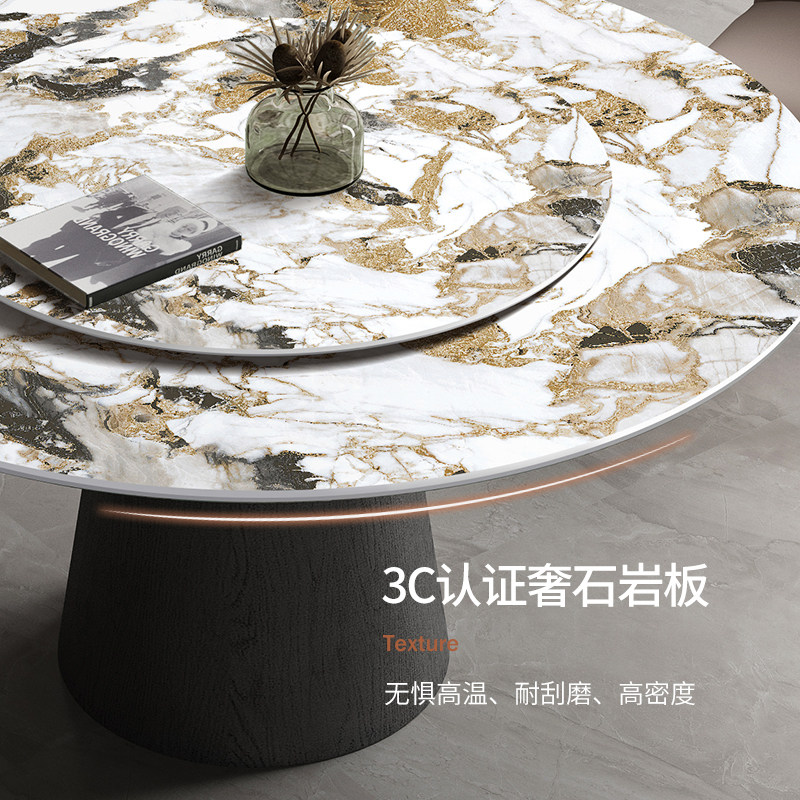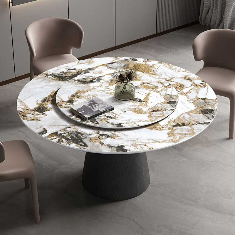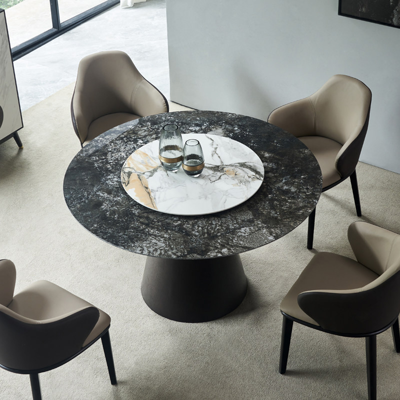 LDAD Italian Rock Round Table and Chair Combination Household Small Household Light Luxury Marble Belt Rotary Disk