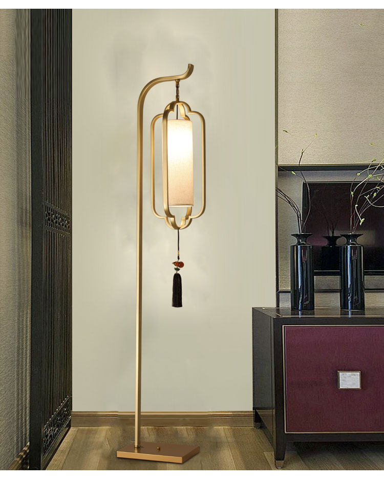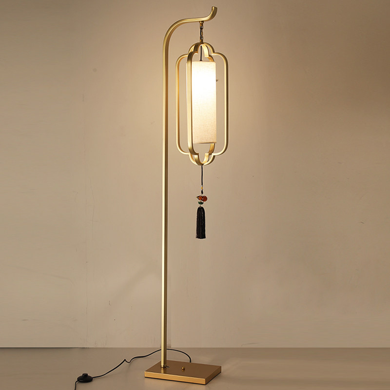 New Chinese Floor Lamp Living Room Imitation Ancient Retro Cloth Art Fishing Lantern Book Room Bedroom Lamp Upright China Wind Luminaire