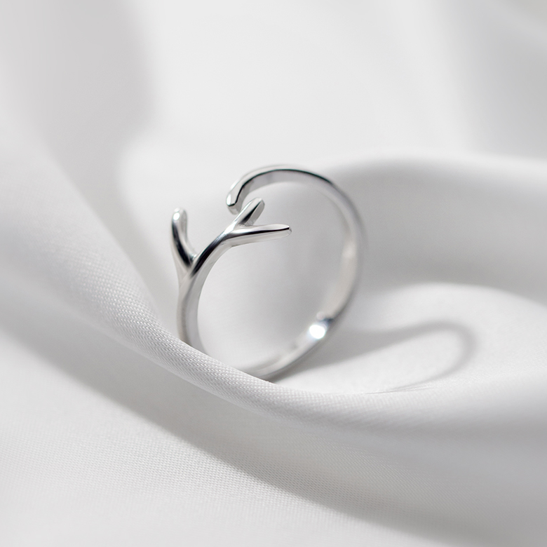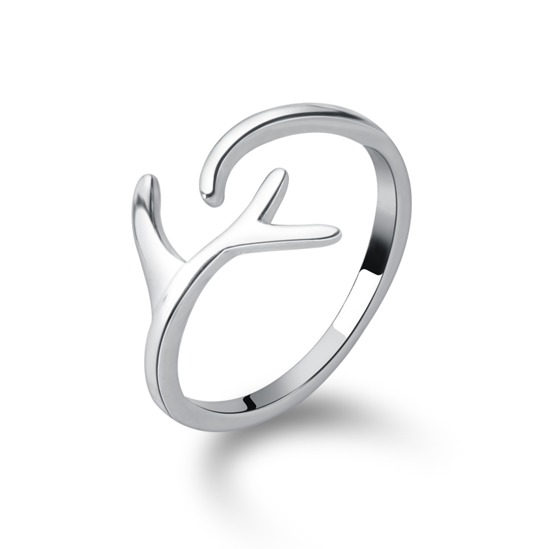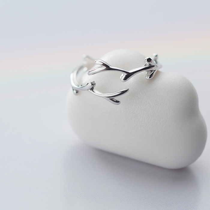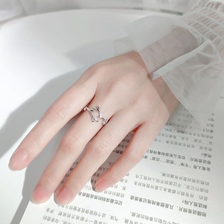 Senteal Deer Corner Twigs Ring Female S925 Pure Silver Opening Adjustable Student Brief Cute Little Fresher Index Finger Ring