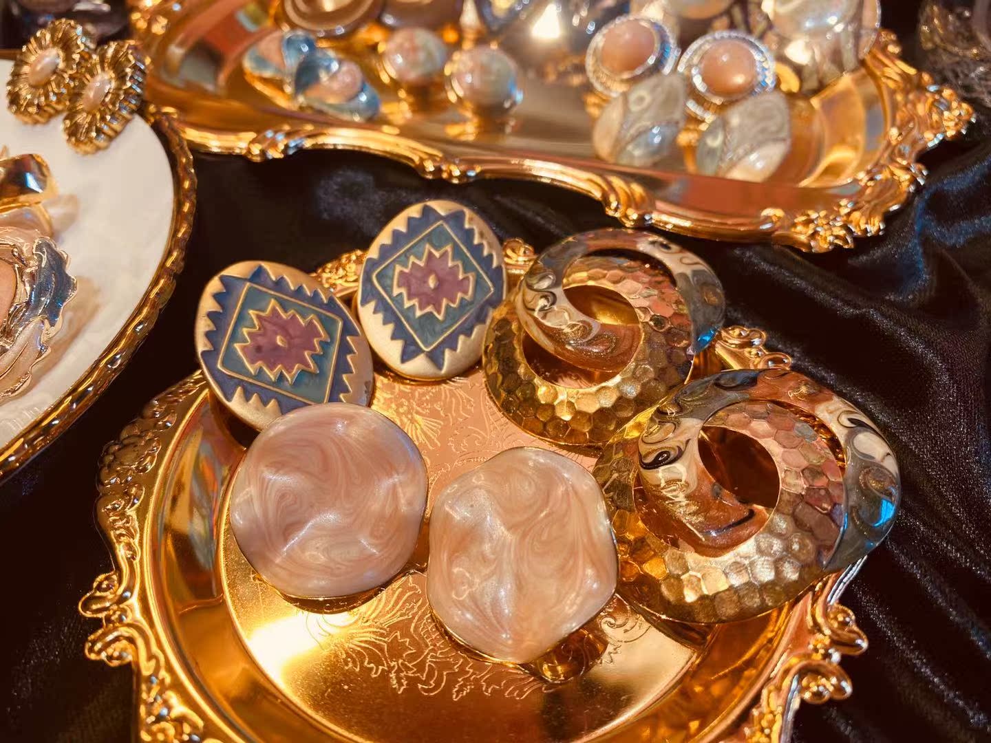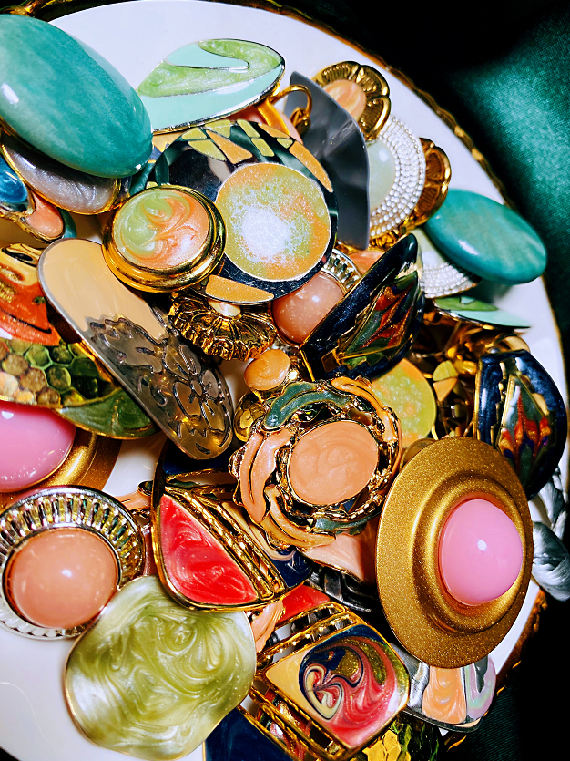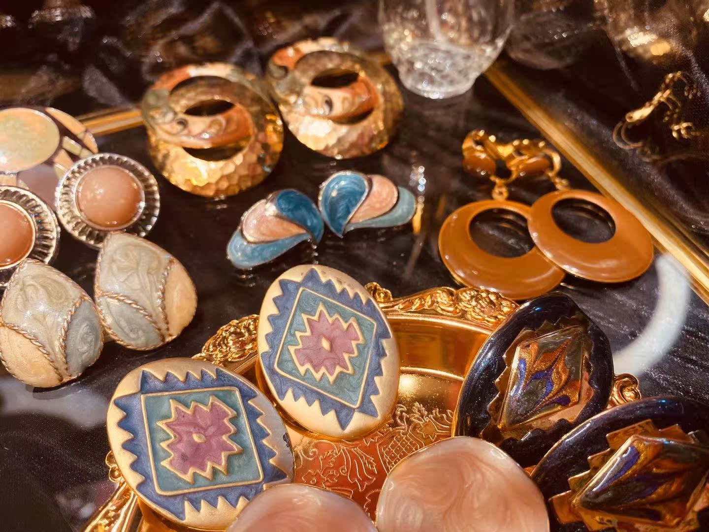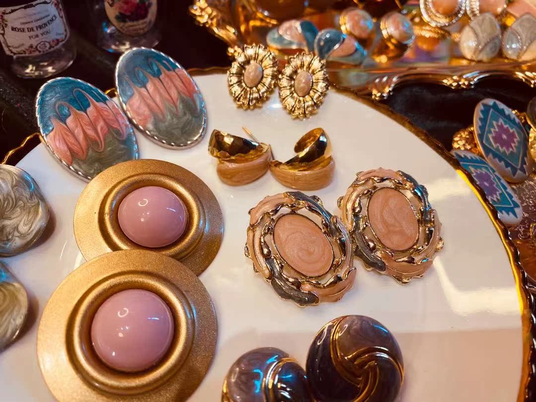 (Millionaires Bean) Vintage Earrings American Enamel Vintage Antique Antique Ear Clips European (8)