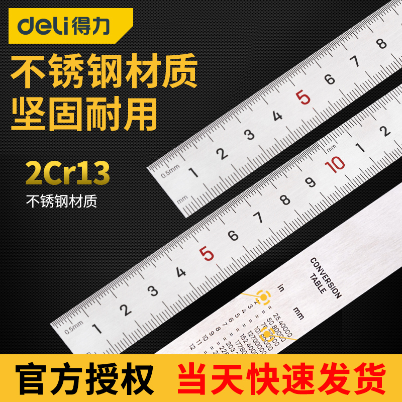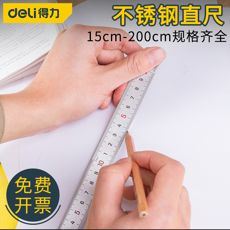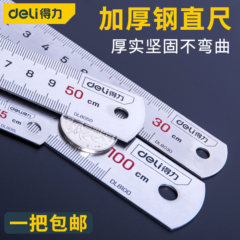 Deli stainless steel ruler student stationery iron ruler thickened steel ruler 1 m 15 20 30 50 cm steel plate ruler
