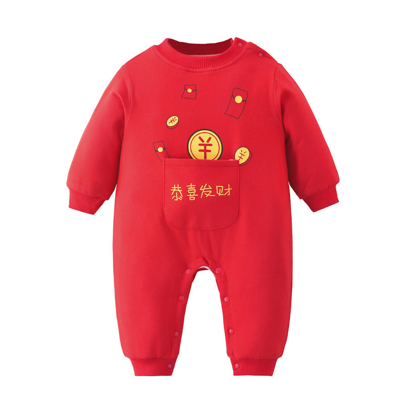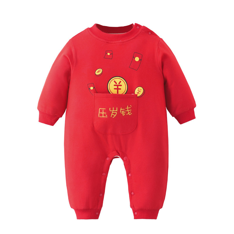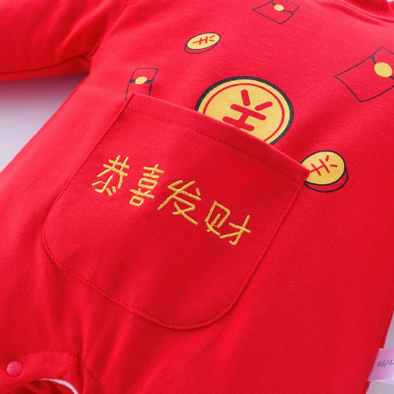 Baby New Year's New Year clothes Winter dress Women newborns Lionates Garn-up men's red beiyyears to wear baby New Year dress