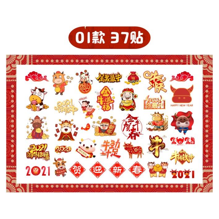 2021 ox year tattooed with New Year's face sticker annual meeting open door red Chinese New Year's fortune Shenzodiac Niu Niu