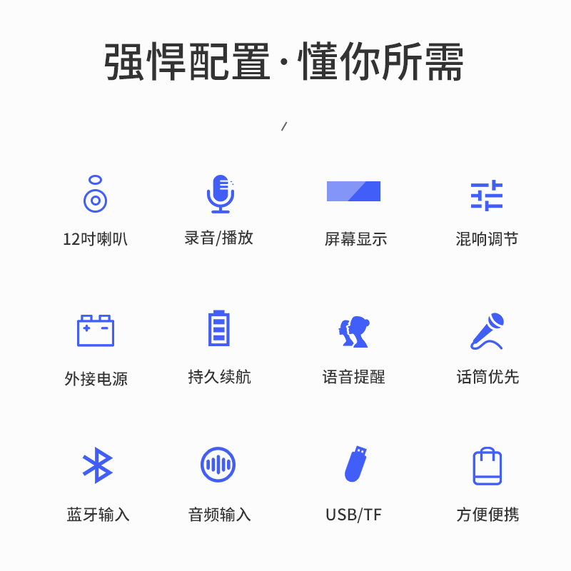 12-inch Bass Bluetooth Ultimate Edition (Standard) 12-inch Bass Bluetooth Ultimate Edition + 32GU Disk 12-inch Bass Bluetooth Flagship + Wireless Microphone 1 12-inch Bass Bluetooth Flagship + 1 32GU Disk 12-inch Bass Bluetooth Flagship + 2 Wireless Microphones 12-inch Bass Bluetooth Flagship + 2 Wireless Microphones 12-inch Bass Bluetooth Flagship + 2 Wireless Microphones + 32GU Disks 12-inch Bass Bluetooth Flagship + Wireless Headset 1 12-inch Bass Bluetooth Flagship + 32GU Disk