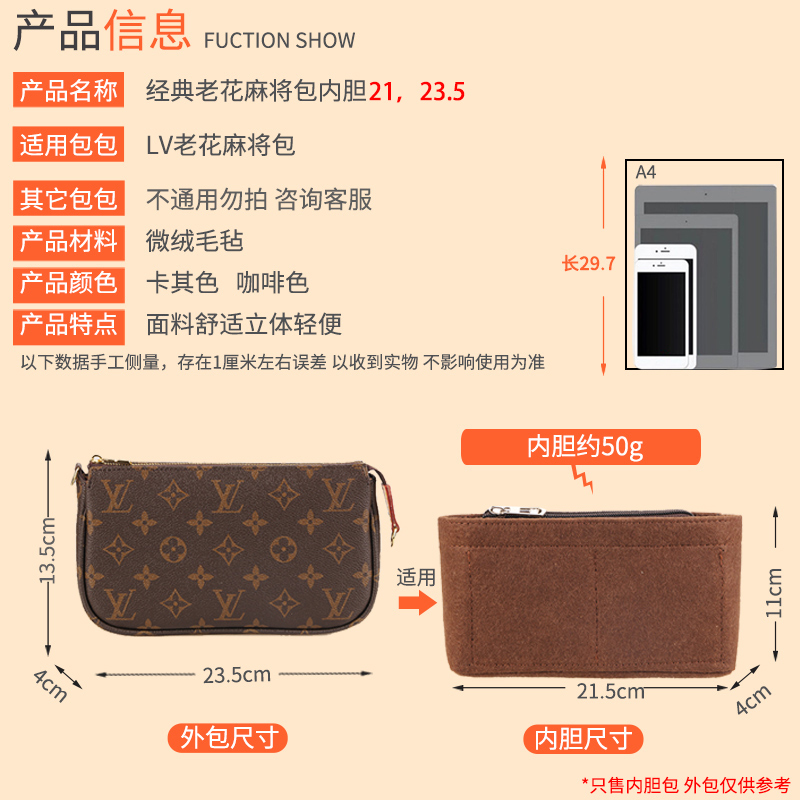 Used for LV cannabis will bag liner bag middle bag 23 5 medieval transformation lining inner bag storage bag built-in bag support shape