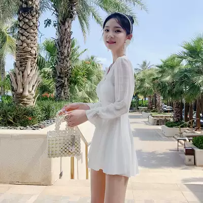 2021 New Fairy Fan Xianthin sexy lace one-piece long sleeve flat angle two-piece small chest gathering hot spring swimsuit
