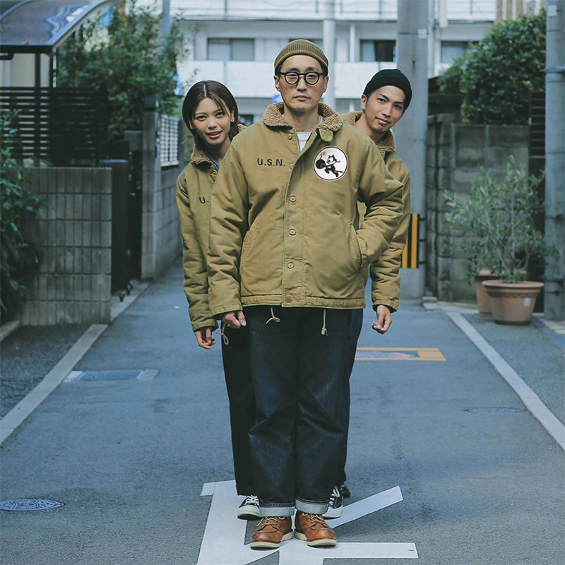 Autumn and winter new Aramikazi Japanese N1 Fili cat deck jacket jacket retro lambskin navy cotton suit