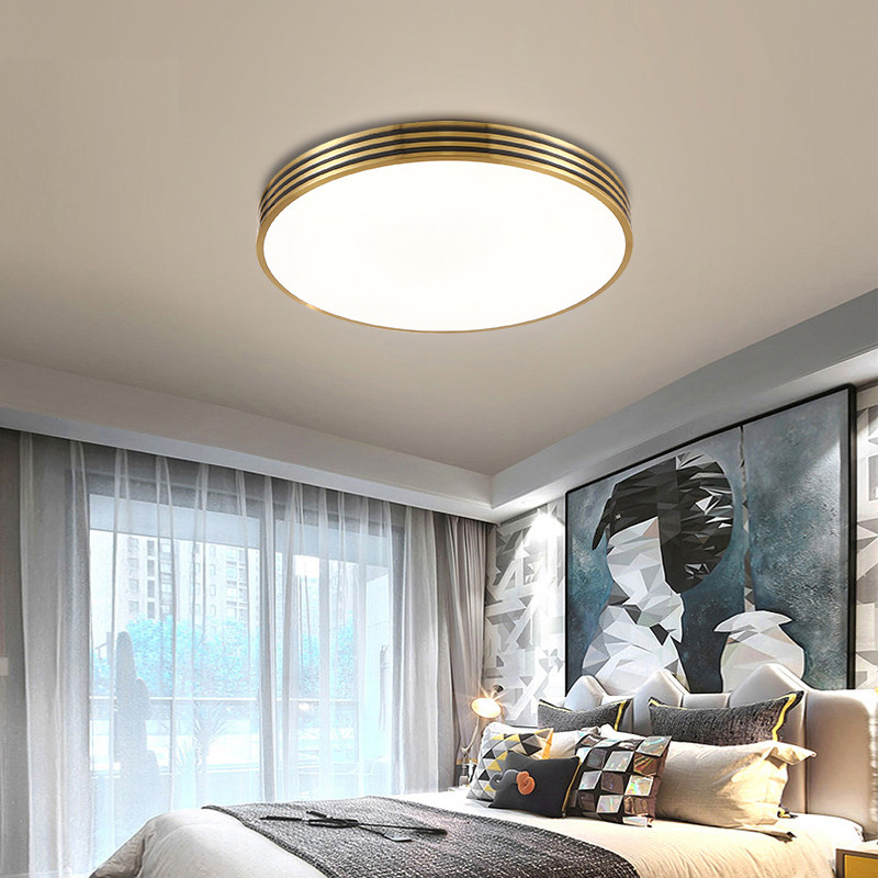 Zhongshan factory full copper frame bedroom lamp led ultra-thin round line ceiling lamp simple black room lighting