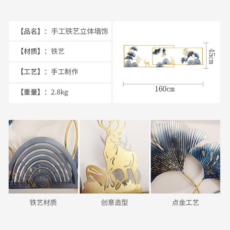 Wall Decoration Wall Decoration Creative Solid Gingko Iron Art Wall-mounted New Chinese Living Room Sofa Background Wall Metal Wall Decoration