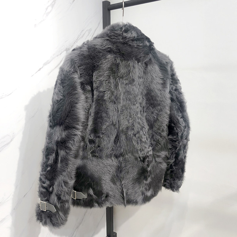 Autumn Winter Sescana Original ecological lamb fur integrated male sheen cut down locomotive jacket leather grass jacket thickened