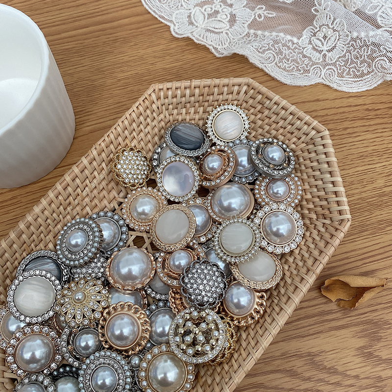 YOMOSTUDIO Name yuan Wind Metal Pearl button Pearlized White Cat Eye Small Fragrance Coat Big Coat Decoration