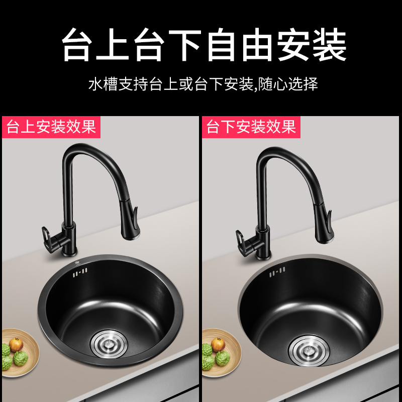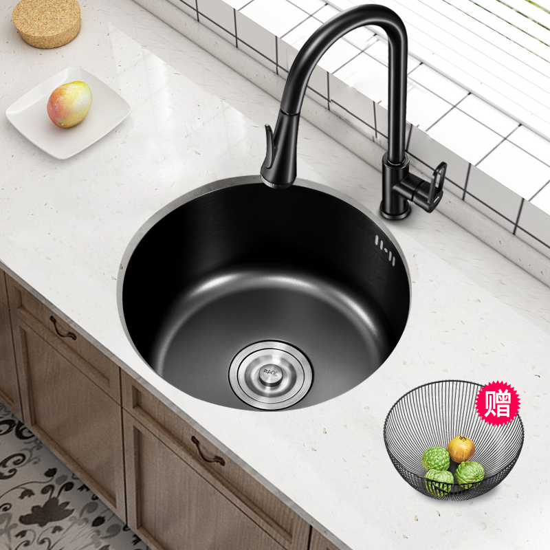 Black nano round mini sink small single sink 304 stainless steel bar counter balcony kitchen wash basin under the counter