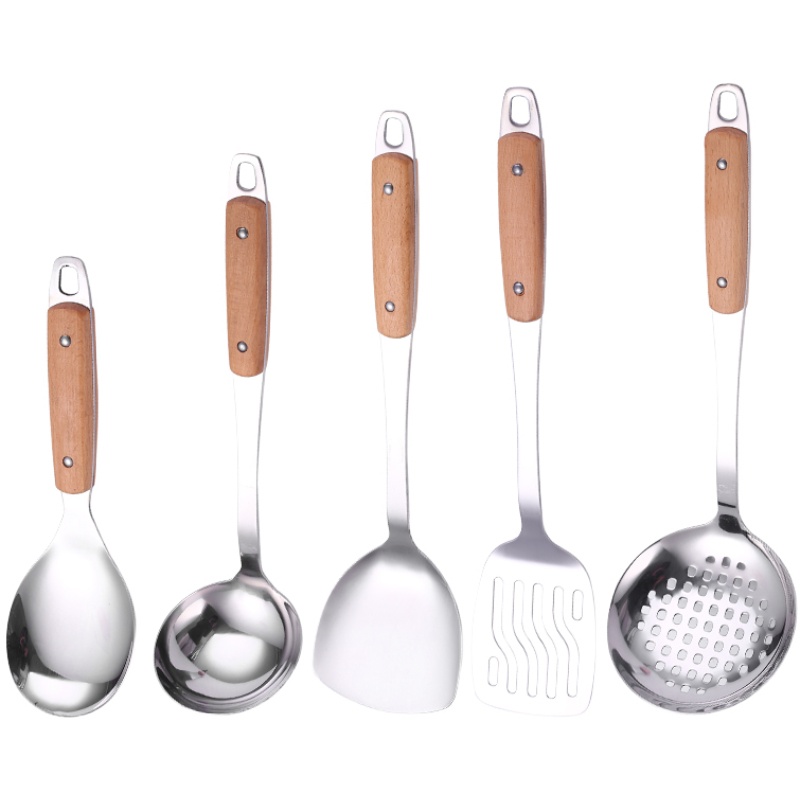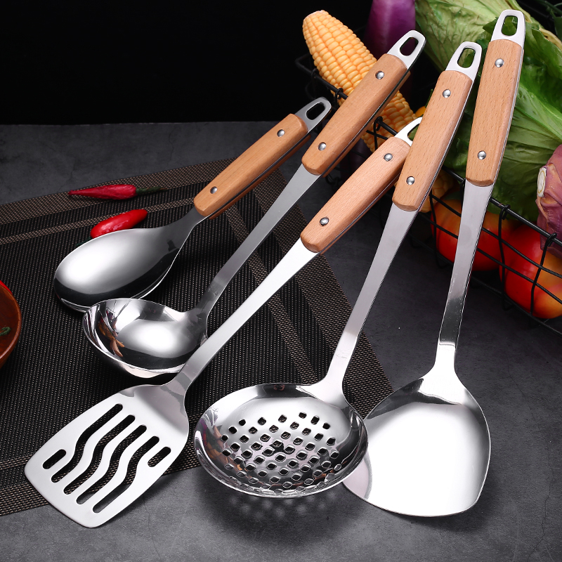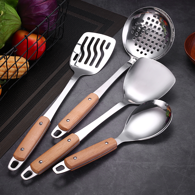 Wooden handle spatula, wooden handle soup spoon, wooden handle frying shovel, wooden handle colander, wooden handle rice spoon