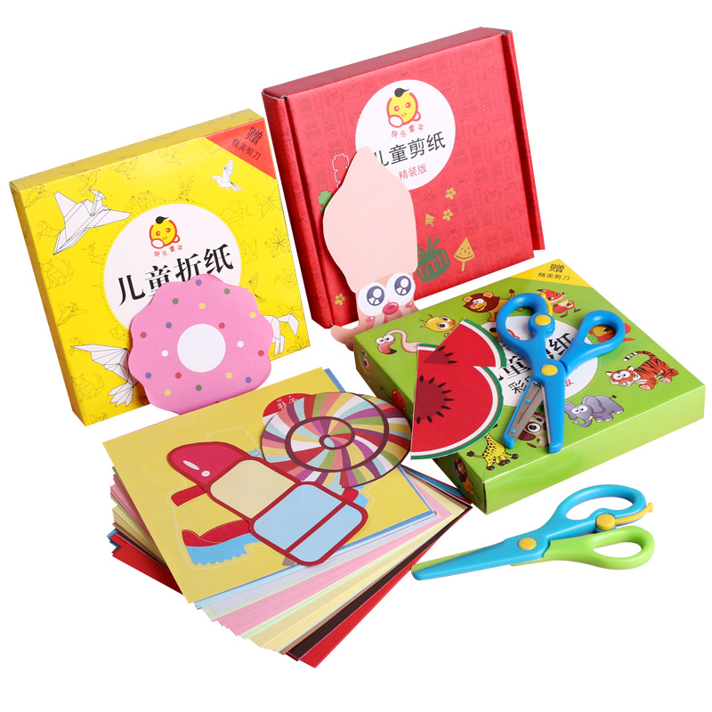 Children's paper-cut set origami boxed color photocopy paper kindergarten baby pattern manuscript cartoon animal paper-cut color thickened large paper crane primary school students handmade paper making material package puzzle