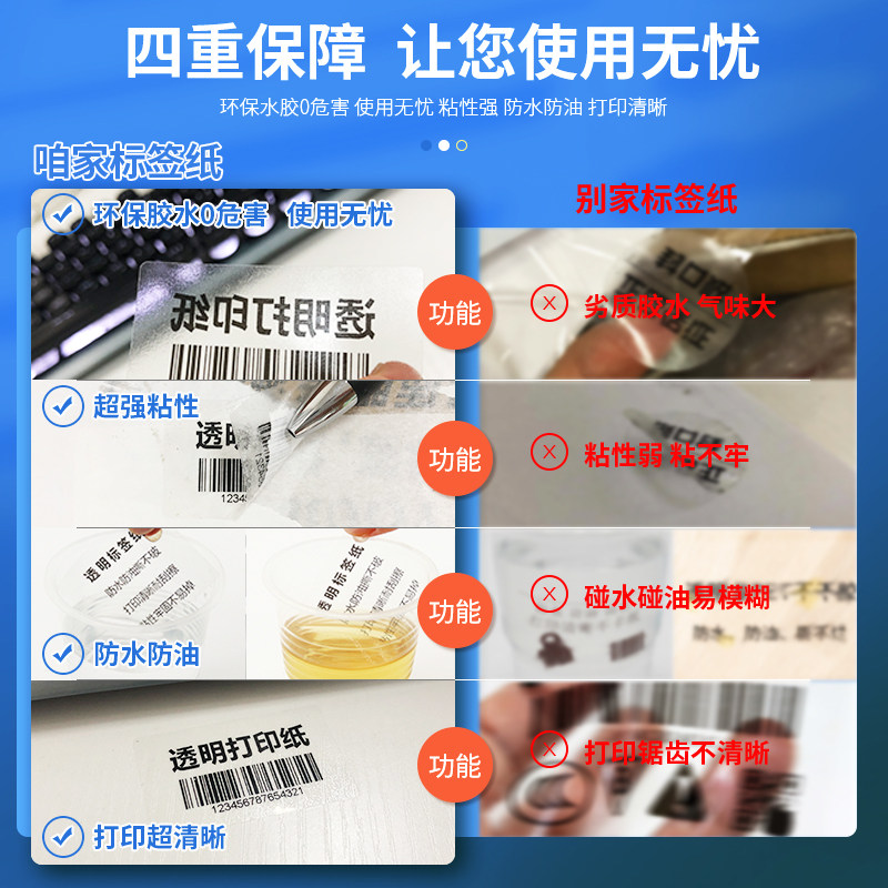 Thermal transparent label barcode sticker without ribbon printing tear-proof 60 40 30 20 transparent thermal sticker