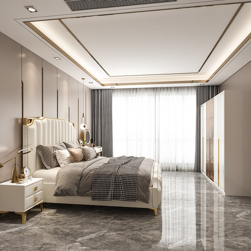 Bed light luxury modern minimalist European-style bed double bed master bedroom wedding bed American light luxury bed ins net red high-end bed